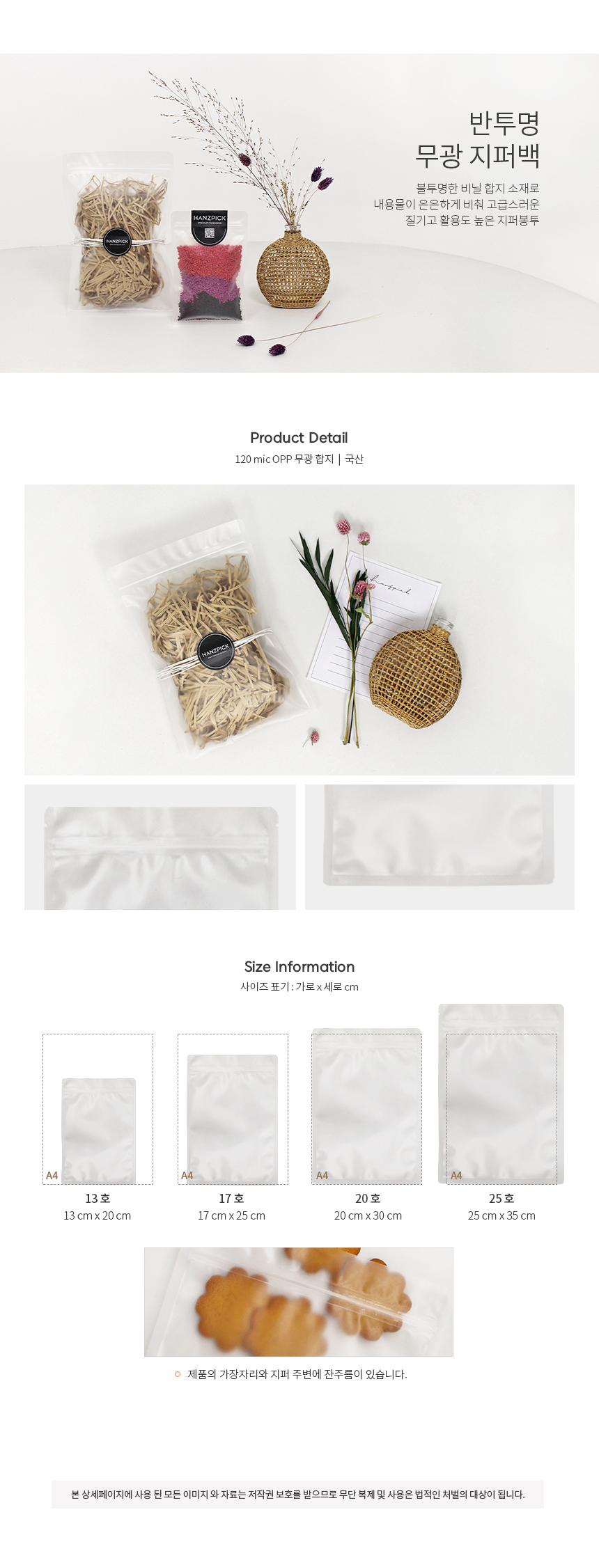 안박스 반투명 무광 지퍼백20호_20x30cm